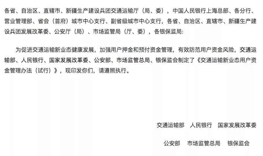 日前6部門(mén)聯(lián)合發(fā)文共享汽車(chē)、單車(chē)企業(yè)原則上不得收押金單車(chē)押金最多應(yīng)2個(gè)工作日退還 共享汽車(chē)單車(chē)新規(guī)來(lái)了!6部門(mén)聯(lián)合印發(fā) 日前,交通運(yùn)輸部、中國(guó)人民銀行、國(guó)家發(fā)展改革委、公安部、市場(chǎng)監(jiān)管總局、銀保監(jiān)會(huì)6部門(mén) ...