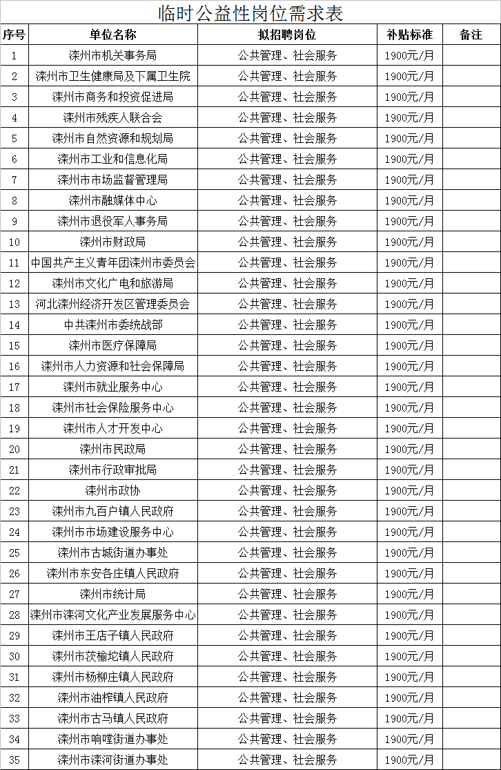 灤州市公開招聘臨時公益性崗位的公告按照《唐山市人力資源和社會保障局關(guān)于做好2021屆高校畢業(yè)生臨時公益性崗位招聘工作有關(guān)問題的通知》(唐人社字〔2021〕109號)要求,在全市開發(fā)60個臨時公益性崗位,用于幫扶202 ...