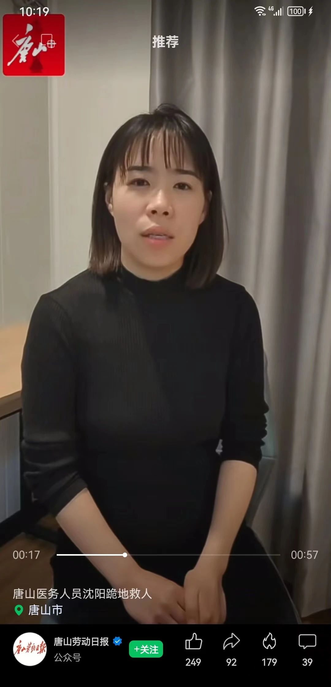 4月30日,“五一”假期第二天唐山中心醫(yī)院檢驗(yàn)科醫(yī)務(wù)人員周鑫衛(wèi)在沈陽游玩時(shí),突遇一女子昏迷倒地沒有猶豫她快步?jīng)_了過去…… 當(dāng)時(shí)周鑫衛(wèi)正和家人一起在沈陽 ...