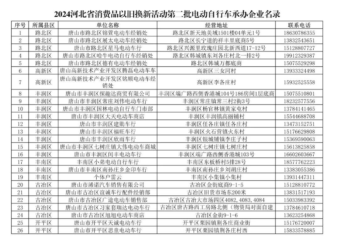 為了讓消費(fèi)者享受更便利更貼心的家電家裝購新、電動(dòng)自行車以舊換新服務(wù),唐山市圍繞家電、家裝、電動(dòng)自行車等領(lǐng)域征集了第二批752家承辦企業(yè)。加之第一批企業(yè),全市樂享“煥新”的目的地已經(jīng)達(dá)到了1157家,更加便捷 ...